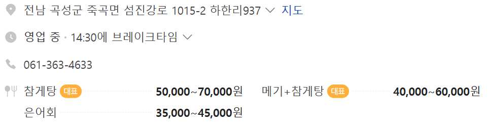 | 운영 식당 | 새수궁가든 (전라남도 곡성군 죽곡면 섬진강로 1015-2) |
